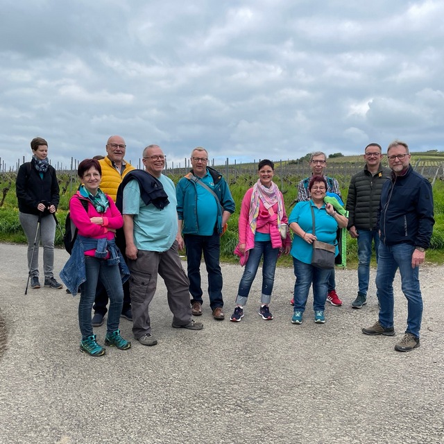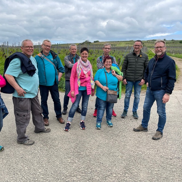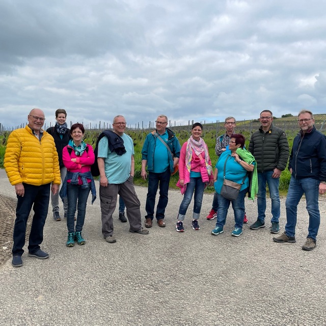 Die Gäste erwartete am Samstag in Ingelheim ein abwechslungsreiches Programm. Bereits um 13:30 Uhr startete der „kleine“ Rundgang durch Ingelheim. Horst Bajorat und Michael Beaury führen die Gäste zu unserer Kulturhalle der kING und von dort weiter zum Winzerkeller. Nach einem Besuch des Saalgebietes, ging der Rundgang am ehemaligen Krankenhaus vorbei zur Burgkirche.
