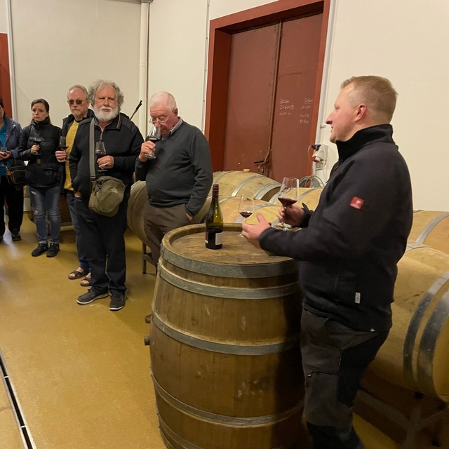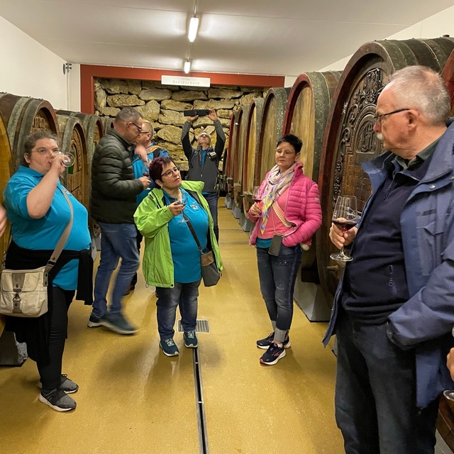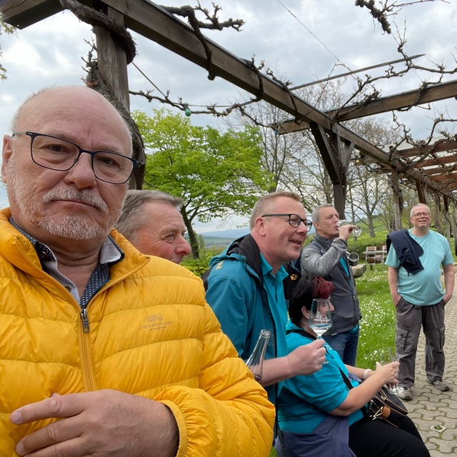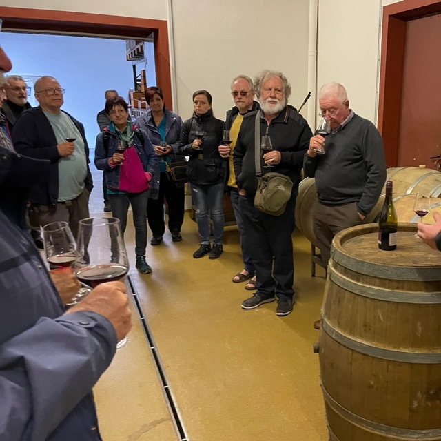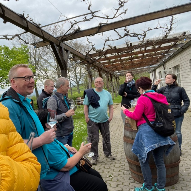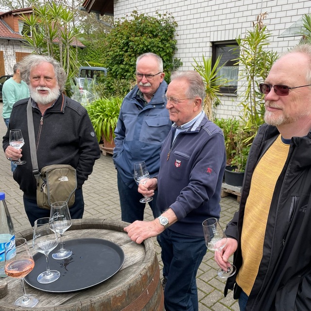 Im Weingut Breitscheid startete direkt nach der Ankunft der Wanderer, die durch die Sänger des MGV-Grosswinternheim verstärkt wurden, eine Weinprobe, die sofort allen Teilnehmern wieder ein lächeln ins Gesicht zauberte. Beide Chöre gaben selbstverständlich einige Kostproben ihres Könnens.