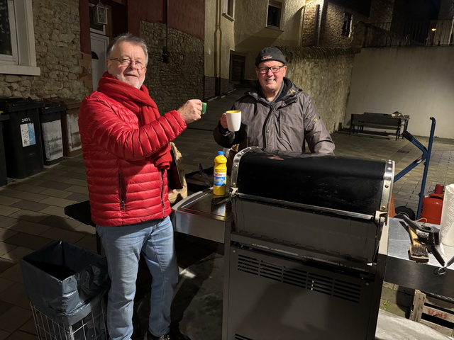 Vereinsvorsitzender Horst Bajorat und Ortsvorsteher Christian Fürst begrüßten die Gäste und luden sie herzlich ein, die vorweihnachtliche Atmosphäre bei Glühwein, Punsch und Bratwürsten vom Grill zu genießen.