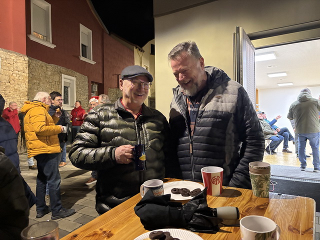 Vereinsvorsitzender Horst Bajorat und Ortsvorsteher Christian Fürst begrüßten die Gäste und luden sie herzlich ein, die vorweihnachtliche Atmosphäre bei Glühwein, Punsch und Bratwürsten vom Grill zu genießen.